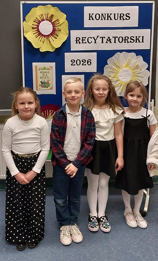 W dniu 3 marca 2026 w naszej szkole odbył się konkurs recytatorski dla uczniów klas 1-3, poświęcony polskiej poezji dziecięcej. Wydarzenie miało na celu popularyzację literatury pięknej, rozwijanie zdolności estradowych oraz kształtowanie wrażliwości na piękno ojczystego języka. Uczniowie zaprezentowali niezwykle bogaty repertuar. Na scenie królowały utwory klasyków, takich jak Jan Brzechwa czy Julian Tuwim. Nie zabrakło również wierszy współczesnych autorów, m.in. Danuty Wawiłow.