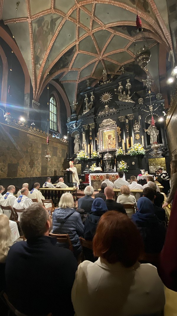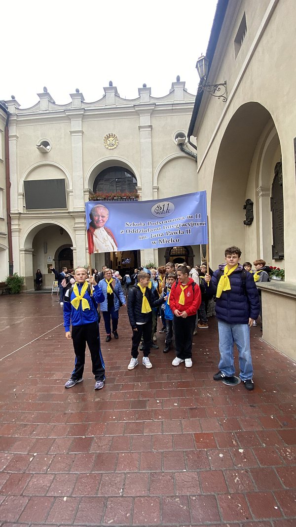 Biskup podkreśli, że pielgrzymka jest przypomnieniem, że Papież jest ważną postacią dla nas, jest wciąż wzorem do naśladowania. Każdy człowiek potrzebuje świadków i wychowawców. Jeżeli jest się na poziomie edukacji, to ważnymi osobami na pewno są patronowie szkoły. A wyjątkowym patronem nie tylko w wymiarze doświadczeń historycznych i pewnego przykładu życia, ale również i duchowego bogactwa jest święty Jan Paweł II. Pielgrzymka zakończyła się zawierzeniem Maryi, uczniów i nauczycieli należących do Rodziny Szkół im. św. Jana Pawła II. Naszą szkołę reprezentowali przedstawiciele Społeczności szkolnej. W drodze powrotnej odwiedziliśmy Sanktuarium Bożego Miłosierdzia oraz Sanktuarium świętego Jana Pawła II w Łagiewnikach.