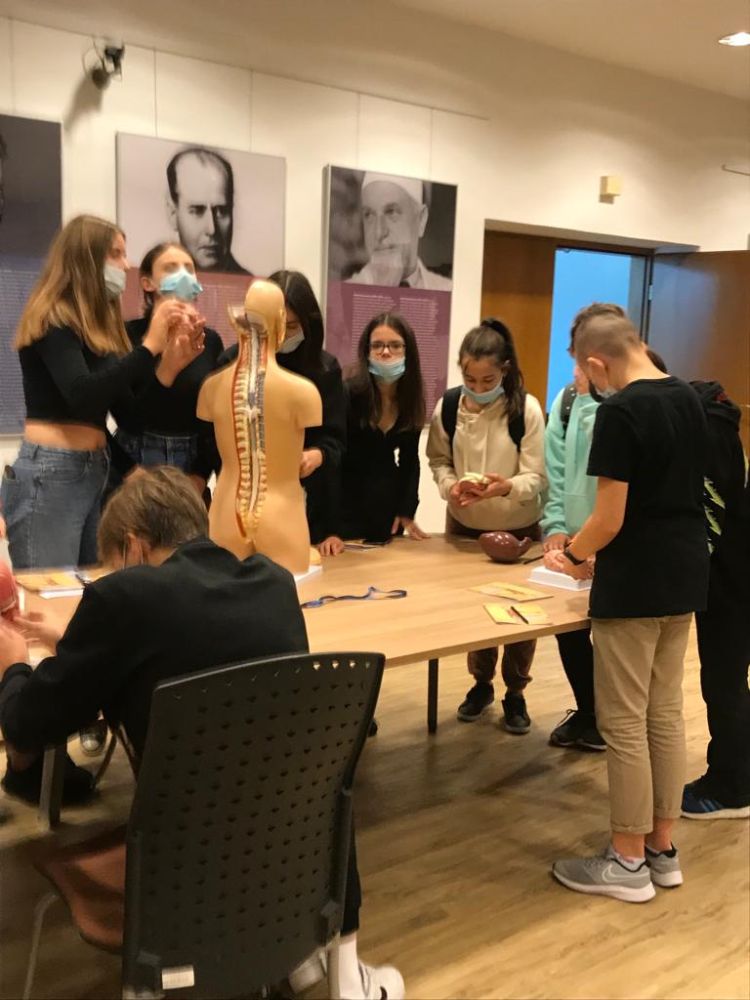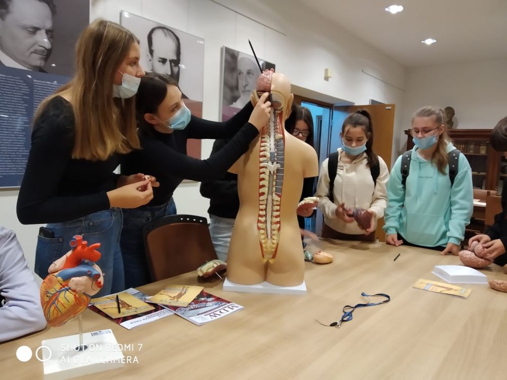 Drugi dzień naszego pobytu w Warszawie rozpoczęliśmy od wizyty w Muzeum Historii Medycyny Warszawskiego Uniwersytetu Medycznego, gdzie uczestniczyliśmy w zajęciach popularyzujących historię anatomii dla szkół w ramach projektu „Poznaj tajemnice ciała ludzkiego w teatrze anatomicznym XXI wieku”. Podczas wizyty uczniowie mieli okazję dowiedzieć się o wybitnych przedstawicielach tej dziedziny, a przede wszystkim poznać anatomię człowieka w nowoczesnej formie. Ponadto zobaczyliśmy najważniejsze miejsca na uczelni i obejrzeliśmy wystawy czasowe.