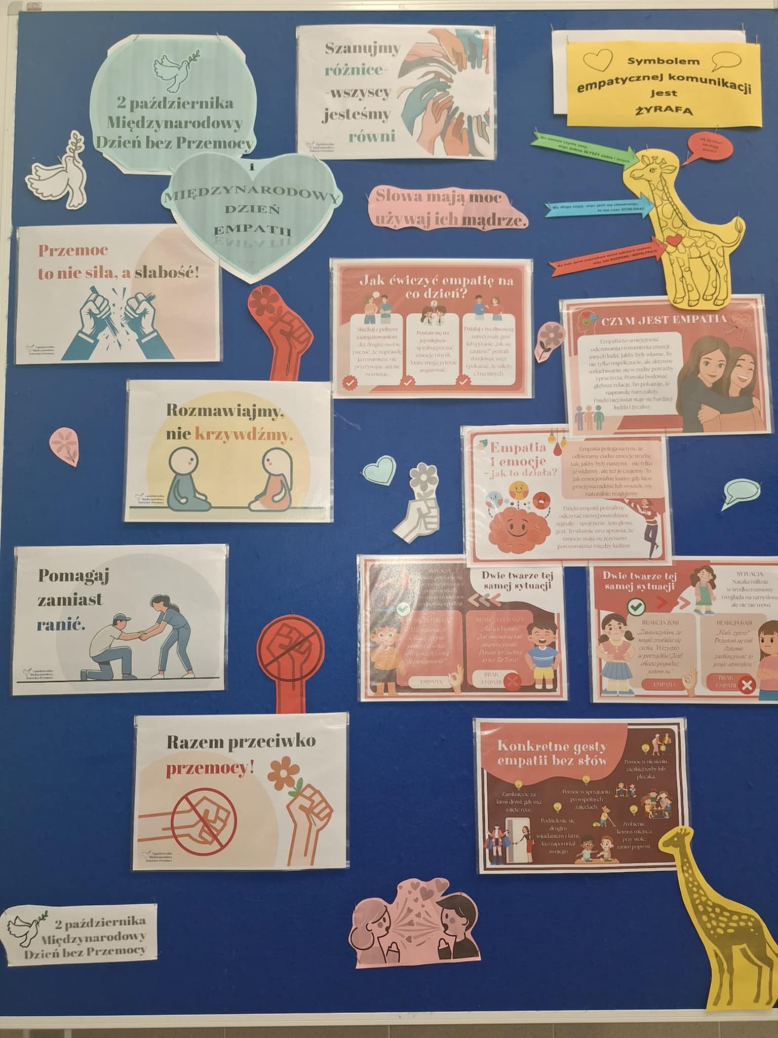 Czwartek 2 października to Międzynarodowy Dzień bez Przemocy, który jest jednocześnie Dniem Empatii. Uczniowie naszej szkoły dowiedzieli się czym jest EMPATIA i mogli poćwiczyć ją w praktyce :) Podczas zajęć uczniowie dowiedzieli się, czym jest EMPATIA - czyli umiejętność wczuwania się w emocje i potrzeby innych osób.