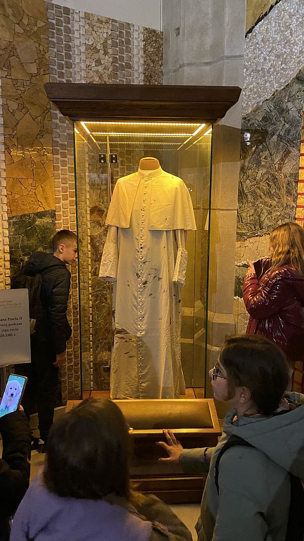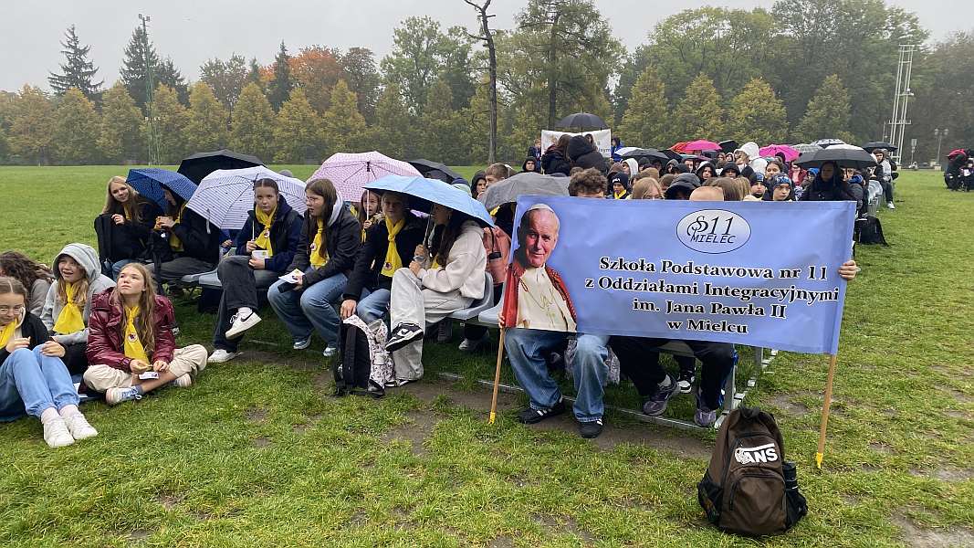 Biskup podkreśli, że pielgrzymka jest przypomnieniem, że Papież jest ważną postacią dla nas, jest wciąż wzorem do naśladowania. Każdy człowiek potrzebuje świadków i wychowawców. Jeżeli jest się na poziomie edukacji, to ważnymi osobami na pewno są patronowie szkoły. A wyjątkowym patronem nie tylko w wymiarze doświadczeń historycznych i pewnego przykładu życia, ale również i duchowego bogactwa jest święty Jan Paweł II. Pielgrzymka zakończyła się zawierzeniem Maryi, uczniów i nauczycieli należących do Rodziny Szkół im. św. Jana Pawła II. Naszą szkołę reprezentowali przedstawiciele Społeczności szkolnej. W drodze powrotnej odwiedziliśmy Sanktuarium Bożego Miłosierdzia oraz Sanktuarium świętego Jana Pawła II w Łagiewnikach.