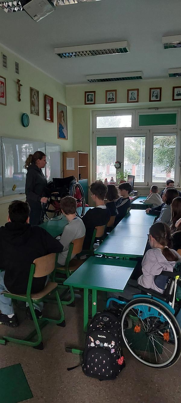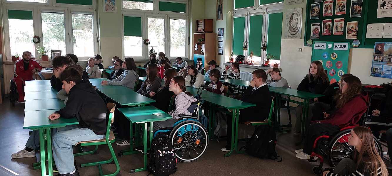 i inspiruje. Uczniowie obejrzeli materiały filmowe ukazujące dyscypliny sportowe, w których świetnie sprawdzają się osoby z niepełnosprawnością. Zobaczyli, że można przełamywać bariery, pokonywać własne słabości, korzystać z życia, jeśli ma się wokół siebie przychylne środowisko i chęć do działania. Ruch staje się mocą i najlepszą rehabilitacją oraz integruje środowiska.