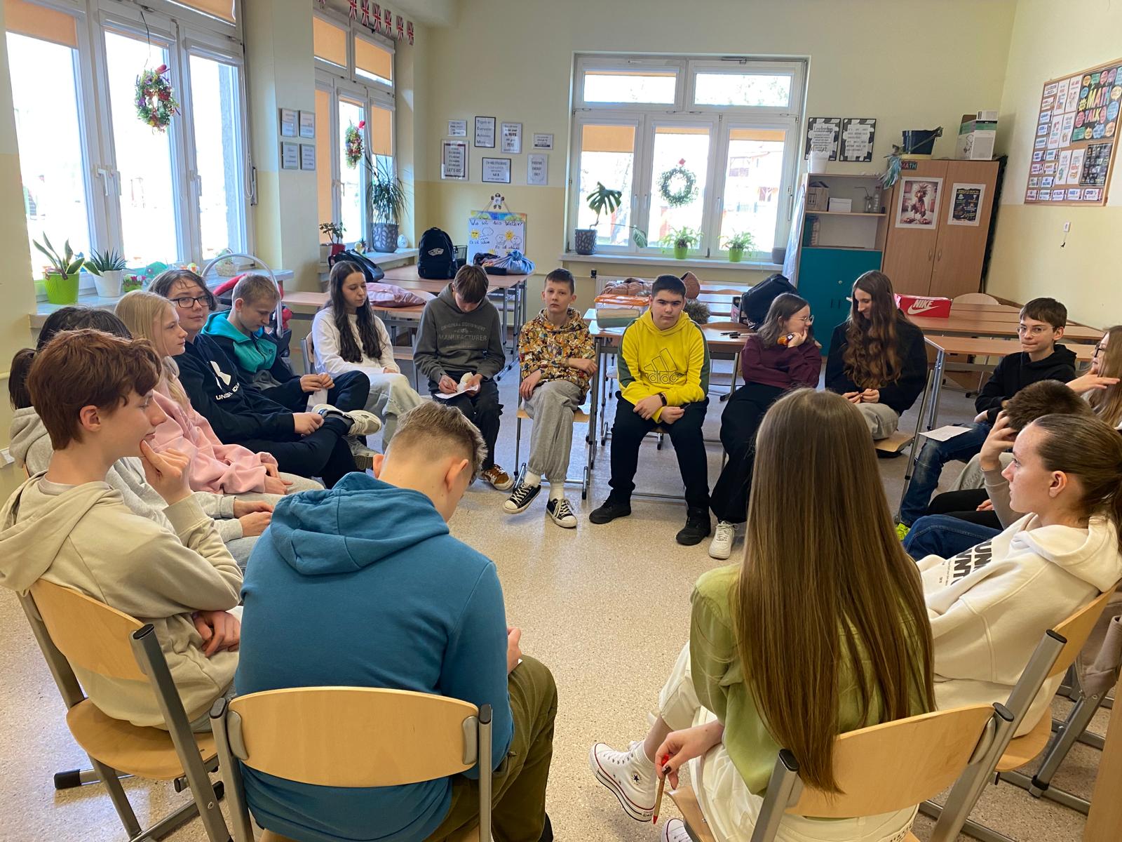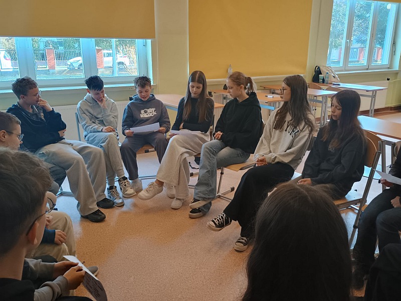 W ostatnich dniach uczniowie klas siódmych wzięli udział w wyjątkowych warsztatach realizowanych w ramach ogólnopolskiego projektu ministerialnego. Zajęcia prowadziły doświadczone trenerki z Fundacji PRO-FIL z Rzeszowa, które w sposób warsztatowy i angażujący przybliżyły młodzieży tematykę przeciwdziałania przemocy i agresji. Ważnym elementem warsztatów było także dbanie o dobrostan psychiczny. Uczniowie poznali podstawowe techniki radzenia sobie ze stresem i napięciem, uczyli się rozpoznawać swoje emocje oraz sposoby ich konstruktywnego wyrażania. Podczas zajęć młodzież zastanawiała się również, gdzie i w jaki sposób można szukać pomocy w sytuacjach trudnych. Dziękujemy za dawkę wiedzy i cenne wskazówki, które pomogą nam tworzyć szkołę wolną od agresji i przemocy. Cieszymy się, że nasi uczniowie tak chętnie zaangażowali się w ten ważny ministerialny projekt.