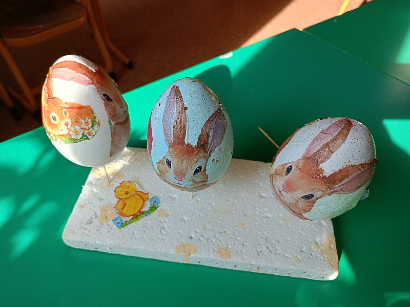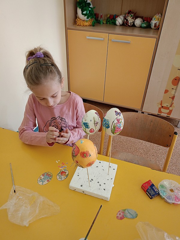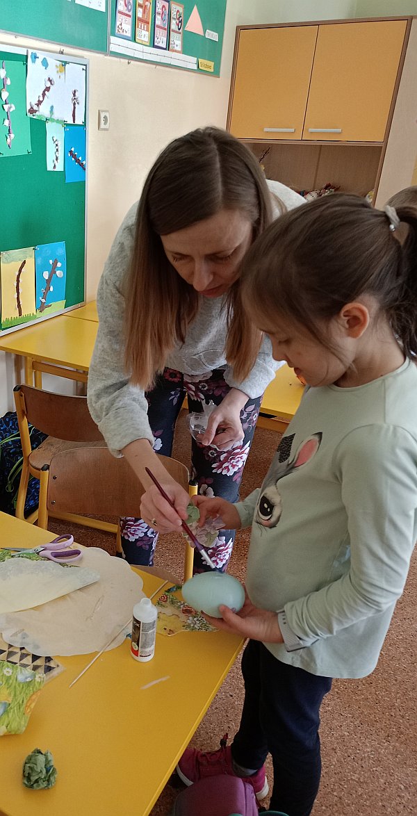 25 marca odbyły się warsztaty Decoupage. Dzieci nauczyły się ozdabiać jajka nową techniką , z pomocą wychowawczyni i mamy Tymoteusza oraz mamy Emilki powstały pisanki które ozdobią koszyczki lub stroiki wielkanocne.