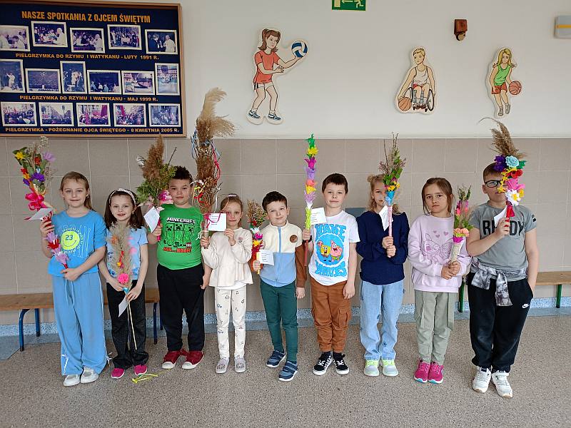 18 marca w klasie 1c odbyły się warsztaty na których dzieci wykonały palmy. Dzielnie w pracach pomagały nam mama Filipa i mama Kuby . Mali artyści swoje palmy wykonali tylko z naturalnych elementów i mogły one rywalizować o miano najpiękniejszych w organizowanym przez Spółdzielczy Dom Kultury konkursie „Najpiękniejsza, bo tradycyjna palma wielkanocna” . Prace młodych twórców zostały docenione i w kategorii klas I - III Emilka Płaczek zajęła pierwsze miejsce , Emilka Tuzhanska drugie miejsce. Wyróżnienia uzyskali: Adam Sęk, Filip Połczyński, Maria Robak, Dawid Krupa, Gabriela Kmieć – Koba, Józef Bigda, Aleksandra Filipowicz.