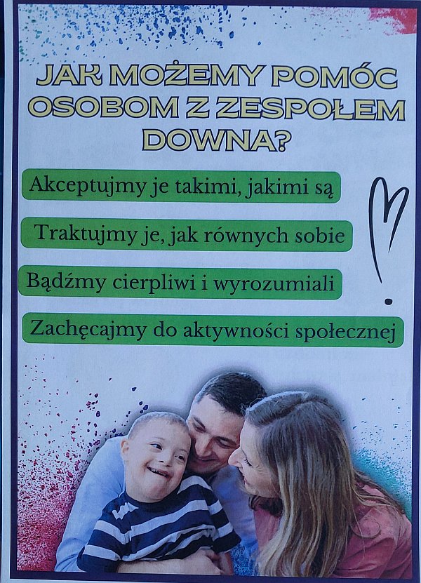 Prosimy, włącz się do akcji! Przeczytaj informacje na temat zespołu Downa umieszczone na szkolnych tablicach. Rozwijaj swoją empatię i otwieraj się na potrzeby innych.