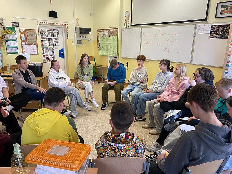 W ostatnich dniach uczniowie klas siódmych wzięli udział w wyjątkowych warsztatach realizowanych w ramach ogólnopolskiego projektu ministerialnego. Zajęcia prowadziły doświadczone trenerki z Fundacji PRO-FIL z Rzeszowa, które w sposób warsztatowy i angażujący przybliżyły młodzieży tematykę przeciwdziałania przemocy i agresji. Ważnym elementem warsztatów było także dbanie o dobrostan psychiczny. Uczniowie poznali podstawowe techniki radzenia sobie ze stresem i napięciem, uczyli się rozpoznawać swoje emocje oraz sposoby ich konstruktywnego wyrażania. Podczas zajęć młodzież zastanawiała się również, gdzie i w jaki sposób można szukać pomocy w sytuacjach trudnych. Dziękujemy za dawkę wiedzy i cenne wskazówki, które pomogą nam tworzyć szkołę wolną od agresji i przemocy. Cieszymy się, że nasi uczniowie tak chętnie zaangażowali się w ten ważny ministerialny projekt.